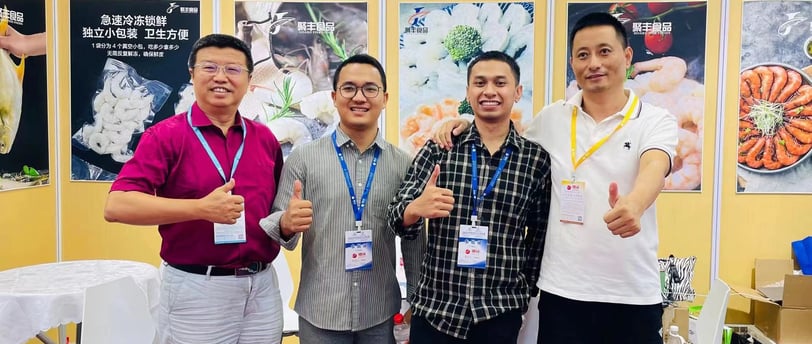 Among the sea of industry representatives and curious visitors, one encounter stood out. A potential buyer, now a valued partner, was visiting our booth. They were impressed with the quality of our Vannamei shrimp but wanted to know more about the story behind the product. As we got talking, I could see their curiosity evolve into genuine interest. We discussed everything, from our sourcing practices to the positive impact we strive to create for our local fishing communities in Indonesia. Our buyer was particularly interested in how we partner with small-scale fishermen, ensuring fair wages and sustainable practices.